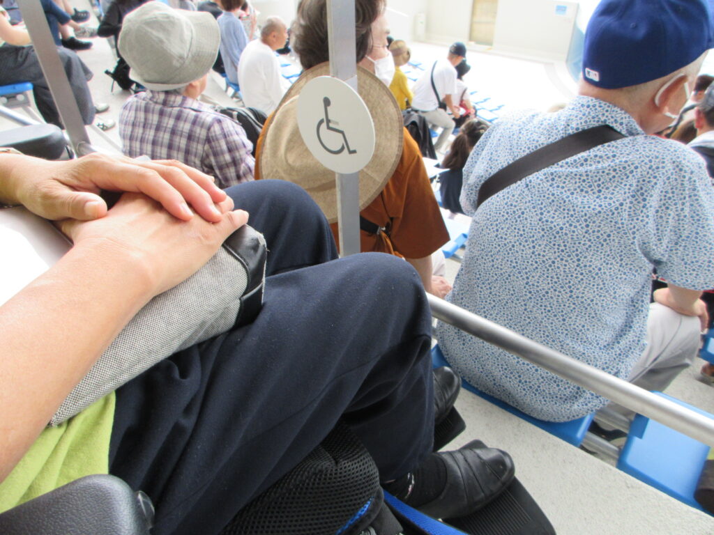 シャチショーのスタジアムも観覧席の中央部あたりが完全に車いす用のスペースになっており、介助者も1名まで付添可能で椅子を用意してくれます。