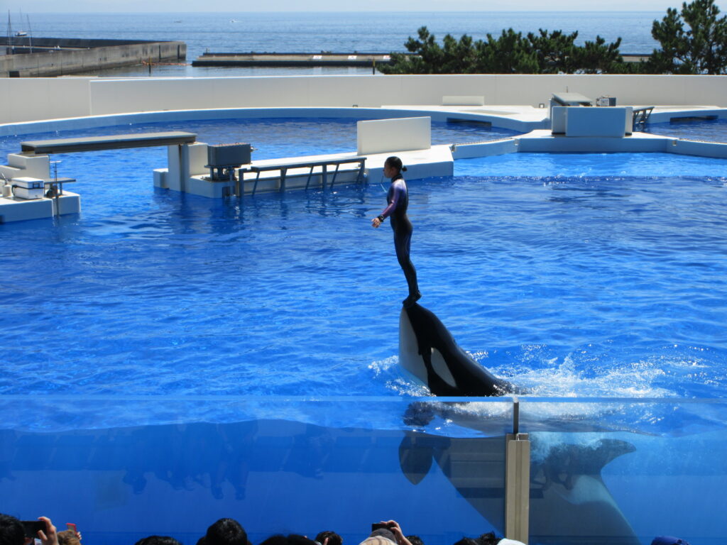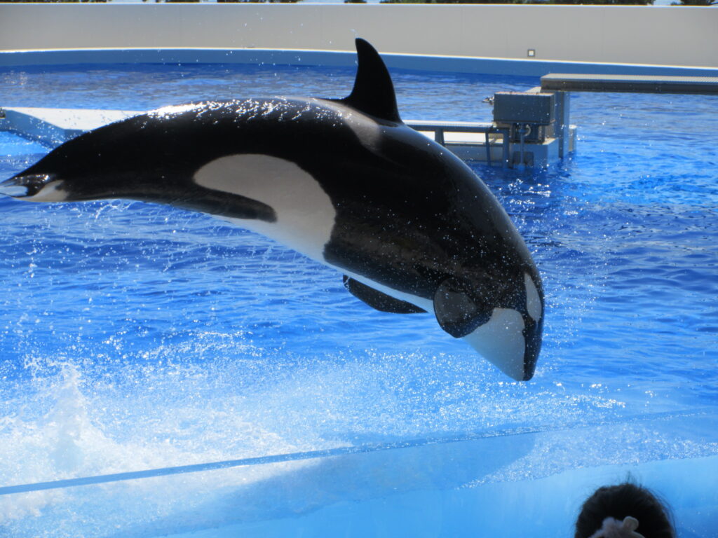 シャチのショーは前方の席で水が掛かる量が、イルカのショーの比ではないのでご注意ください(笑)